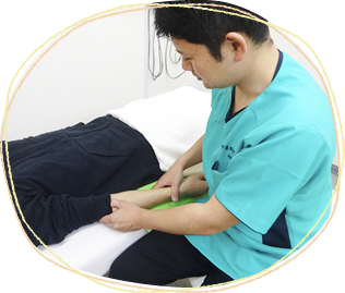 この場合には、臀部の筋肉と太ももの筋肉の間に指をあてて、ソフトなタッチでこすりながら、軟部組織の癒着を解く施術を行っていきます。