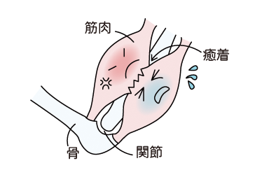 軟部組織(=皮下組織、筋、腱、神経、骨膜など)が癒着・硬化し痛みや動きにくさを生じている状態。