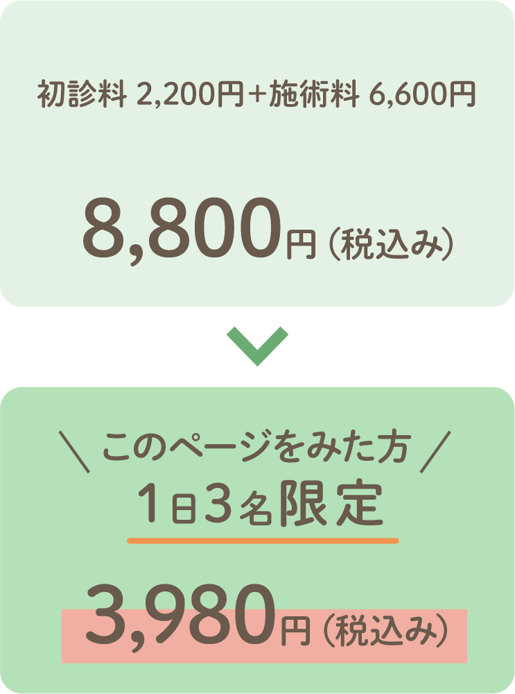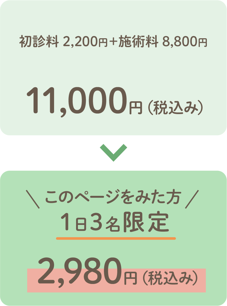 ※2回目以降の施術に使えるお得な「回数券」(1回施術 6,600円)をご用意しています。
