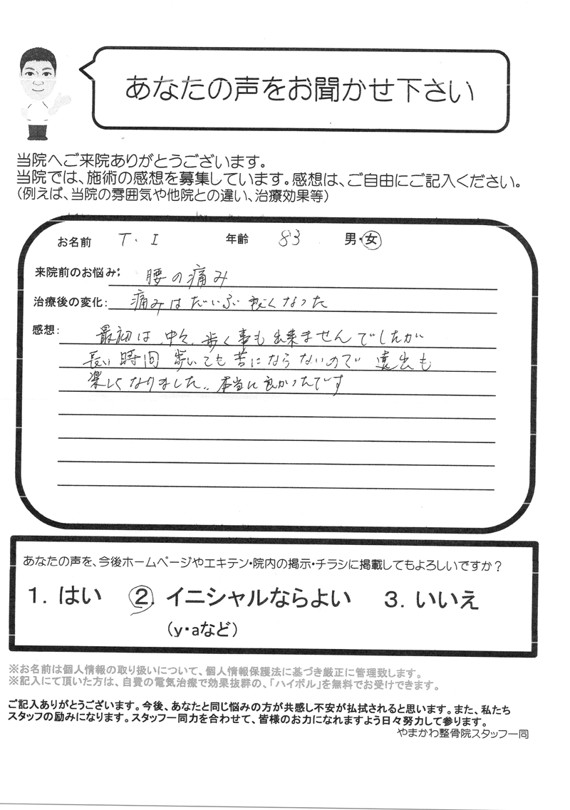 本当に良かったです。(T.I様 83歳 女性)